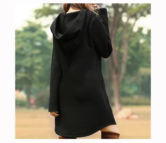 Find your haven of comfort and style in the Allinna Comfy Chic Hoodie Dress. This solid women's sweatshirt embraces a loose, long-style silhouette that exudes relaxation and ease. The oversized hoodie, complete with a casual pocket, is not just a garment – it's a sanctuary of comfort. Step into the serenity of casual fashion.